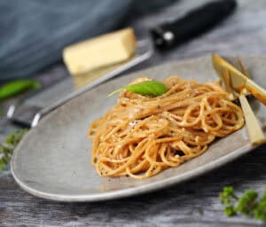 Som sagt er det den ristede friskkværnede peber og de to oste, som udgør rygraden i denne italienske klassiker. Der findes flere forskellige typer Pecorino oste, som alt efter lagring er mere eller mindre kraftige i smagen. Generelt er Pecorino lidt mere kraftig og nøddeagtig i smagen end Parmigiano Reggiano (parmesan), og Pecorino er typisk lidt billigere end parmesan. Du kan sagtens nøjes med en ost i retten, men jeg kan nu godt lide kombinationen af de to oste, hvor man får den lidt mere skarpe smag fra fåremælken i Pecorinoen, og den mere runde og aromatiske smag i parmesanen. Hvis det skal være helt efter den store italienske kogebog, skal du kun anvende Pecorino i retten, så jeg kan kun sige, at du løbende må prøve at gøre dig dine egne erfaringer ligesom undertegnede.