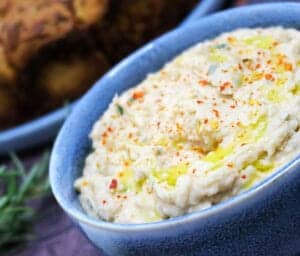 Cremet hummus af cannellini bønner er en mere frisk og let udgave af den klassiske hummus bestående af kikærter og tahin, og her i huset sværger vi faktisk mere til hvid bønnedip fremfor klassisk hummus. Når du først har smagt denne hvide bønnedip med en herlig smag af citron, hvidløg og rosmarin deler du måske min begejstring.