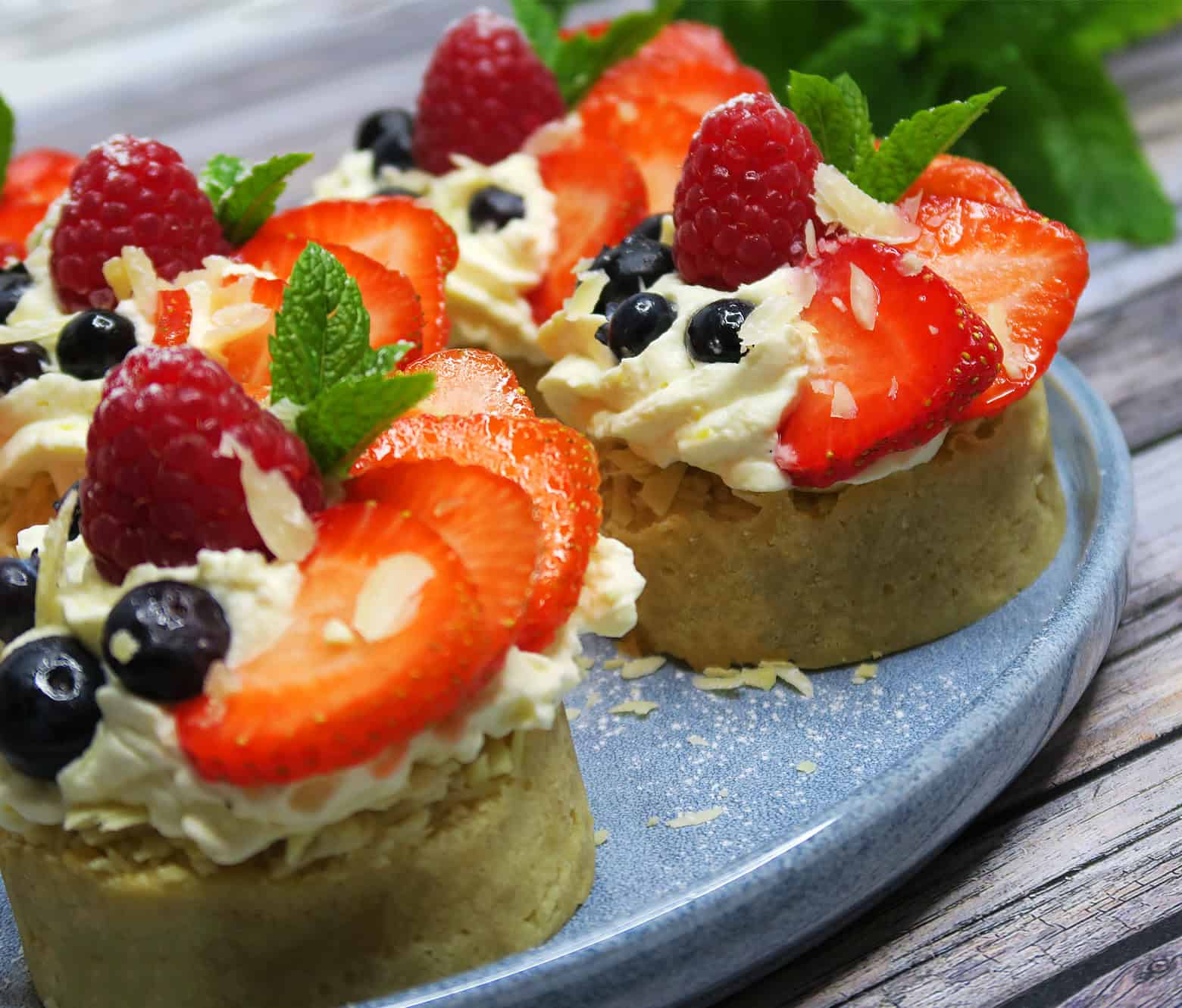 Mazarintærte med sommerbær og citroncreme
