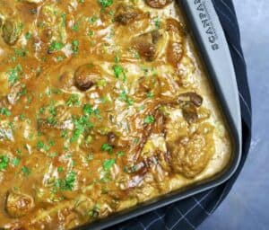 Bare ligge og slappe af imens den cremede sovs trænger ind i alle hjørner og kanter af den sprøde stegeskorpe. Det er ren wellness for krop og sjæl.