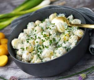 Kartoffelsalat. For mig indbegrebet af en dansk sommersalat, som bør nydes på terrassen i selskab med grillet kød eller fisk. Eller som et lækkert indslag til familieskovturen i det grønne.