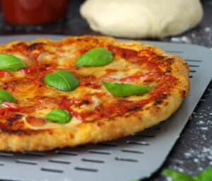 Denne opskrift giver fire til fem store napolitanske pizzaer med en diameter på ca. 28-30 cm. og en vægt på ca. 280-290 gr. Størrelsen svarer med andre ord til en solid pizza fra din lokale pizzamand. Jeg laver altid dobbeltportion (eller tripel) af mine forskellige pizzadeje, så jeg altid er leveringsdygtig i hjemmelavede pizzaer, når naboerne inviterer selv sig på aftensmad, eller når alle vores børn og kærester melder deres ankomst. Dejen er selvfølgelig fryseegnet, og dejkuglerne skal bare pakkes ind i husholdningsfilm eller fryseposer, og så direkte i fryseren når dejen er færdighævet. Når du skal bruge dejen, skal den blot tø op ved stuetemperatur i ca. 3 timer.