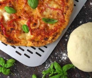 Og så kræver den ultimative pizzadej tålmodighed. Gærdej og tålmodighed lønner sig når det kommer til pizzadej og afbagning.