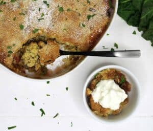 - Luksus-udgaven bagt på smør og med frisk mynte blandet sammen med rabarberen