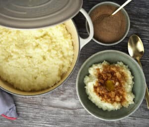 - Nu er risengrøden klar til servering (husk smør og kanelsukker).