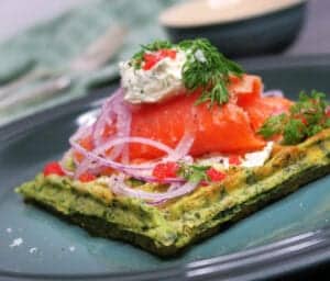 Denne opskrift på spinatvafler med røget laks er:
