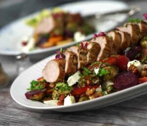 Denne opskrift på svinemørbrad på efterårsbund er nem og billig aftensmad for hele familien, som med statsgaranti vil være et hit for alle madsjæle, som sætter pris på saftig ovnstegt svinemørbrad, og karamelliserede rodfrugter i lange baner.