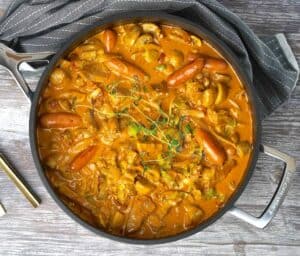 Denne vikinge-inspirerede gryderet er sådan en ruskomsnusk-ret, som kan tilberedes med forskellige kødtyper som fx oksekød, kyllingekød og svinekød.