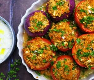 Denne opskrift på græske fyldte grøntsager i ovn er: